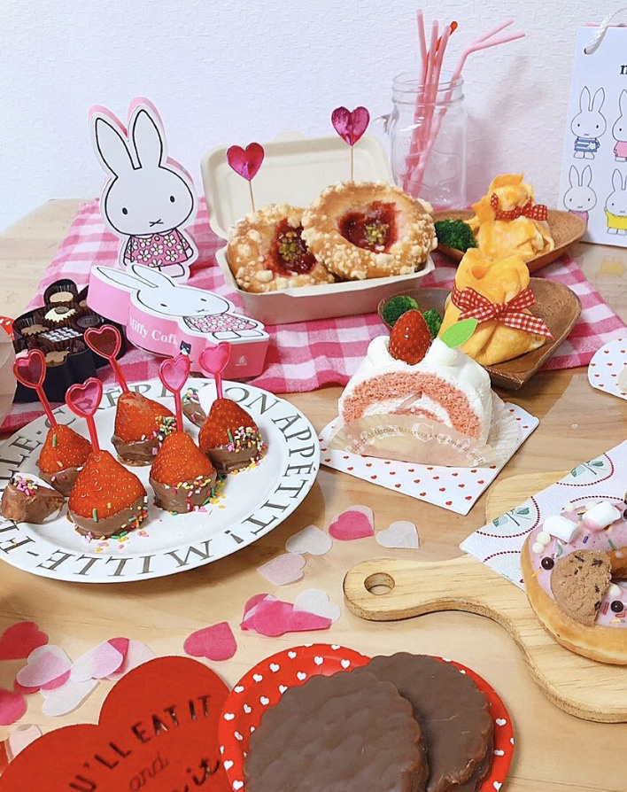 まずはテーブル一面を赤やハート、チョコレートで埋め尽くしてデコレーション。